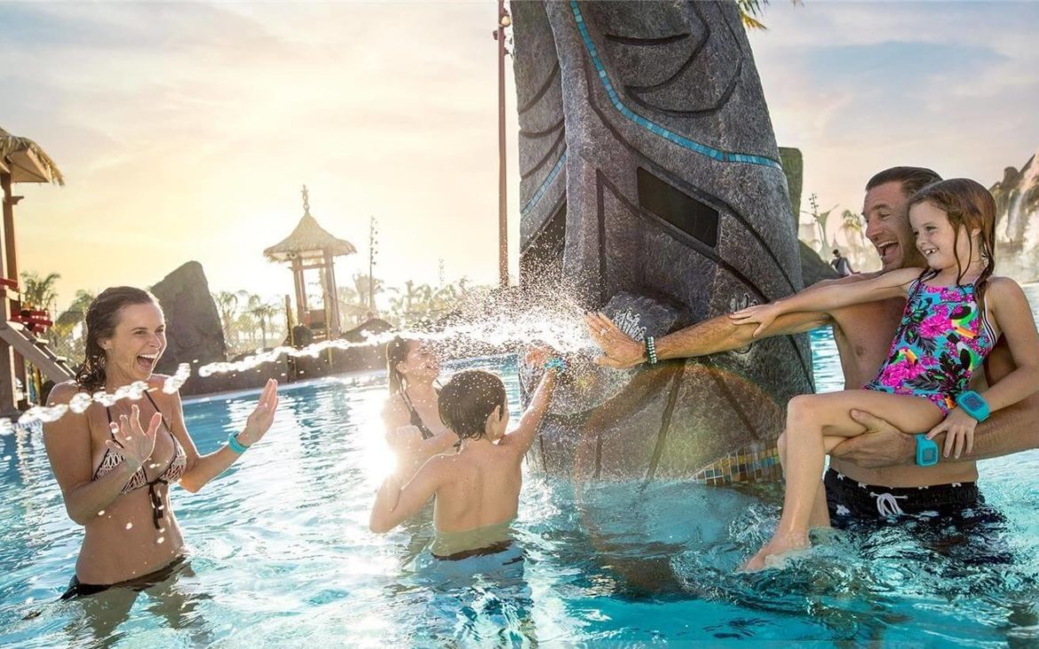 A los niños les encanta cuando pueden viajar a otro mundo. En el caso de Volcano Bay, viajan a la isla del Pacífico de la mítica población isleña Waturi. La atmósfera del parque es la de un resort tropical. Es el tipo de lugar en el que puedes olvidar todas tus preocupaciones y sentirte rodeado por pura diversión..